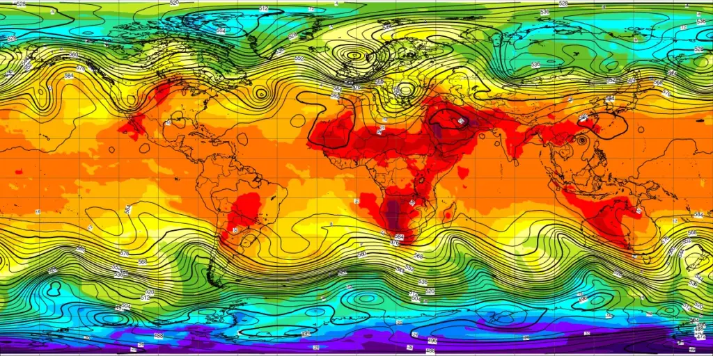 全球大気の流れ、寒気・暖気の状況:2025年10月4日12UTC