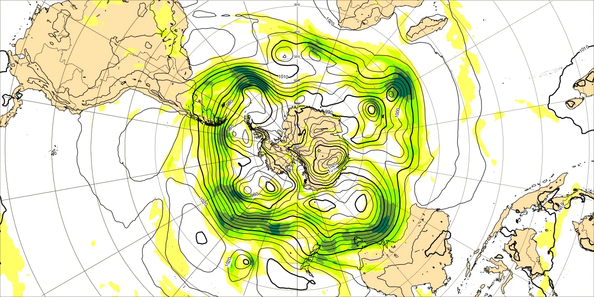 ・ニュージーランドで暖気南下:850hPa・12℃線が45Sまで