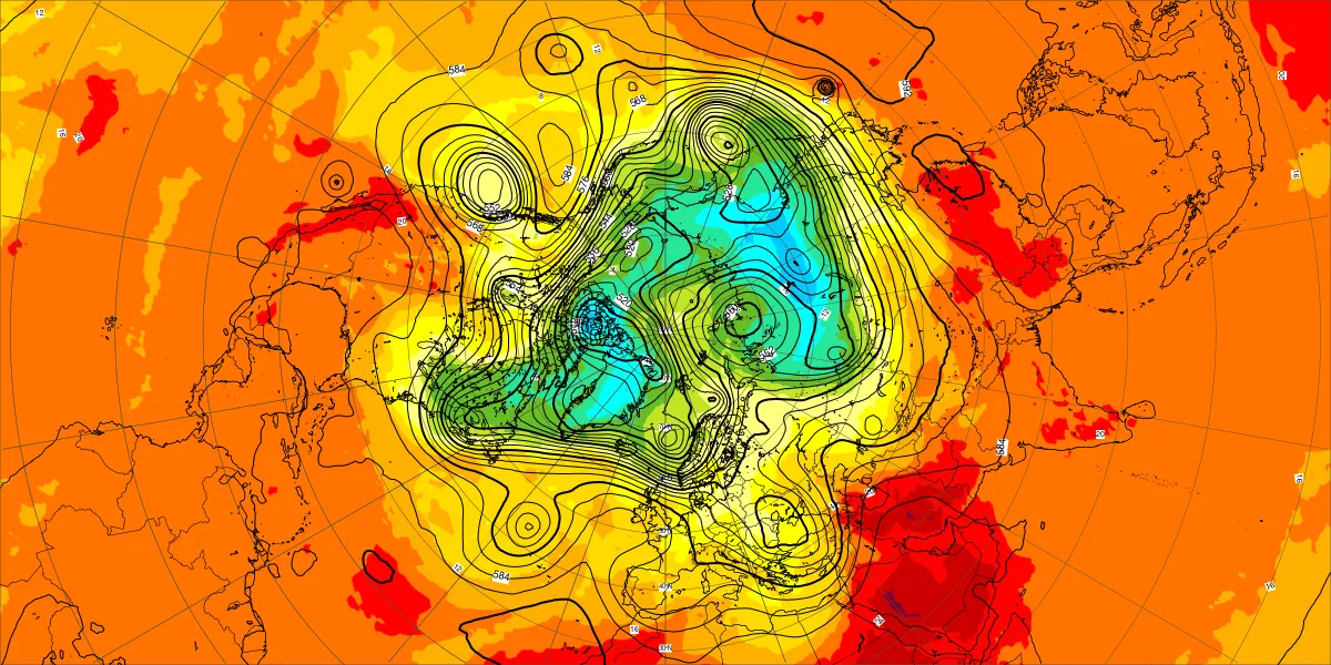 ・ノルウェーのWの寒冷渦:寒気東進、850hPa・0℃線は60N