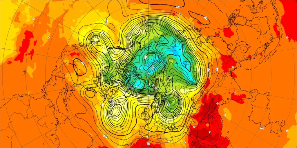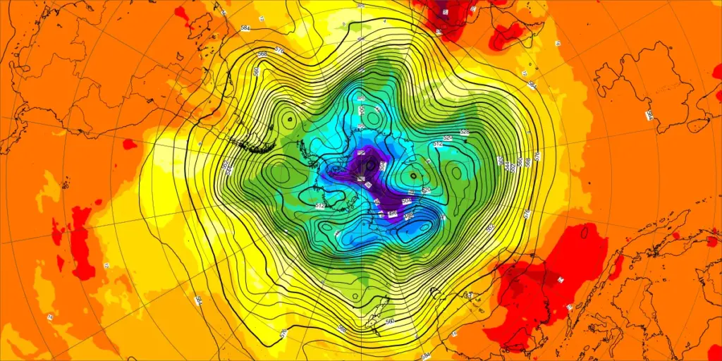 【北半球の500hPa流れ、850hPa気温】