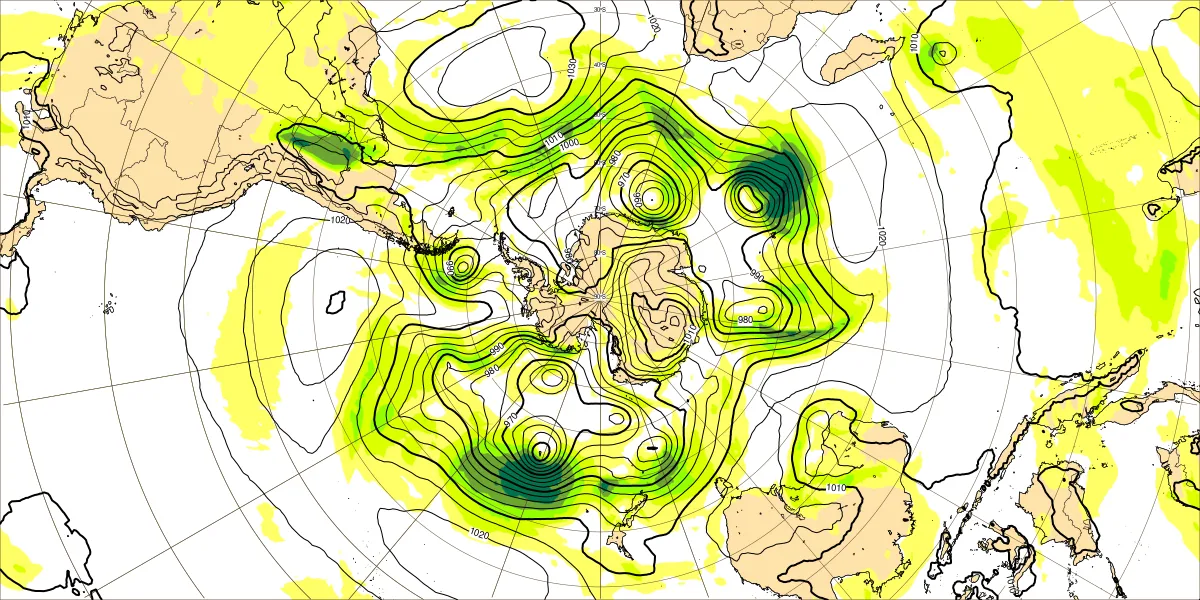 ・南半球低極 -28℃:南極大陸110W~05W付近
