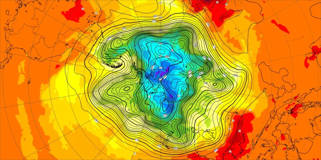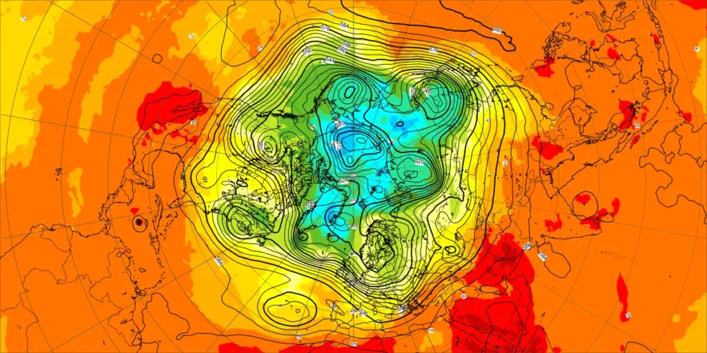 【北半球の500hPa流れ、850hPa気温】