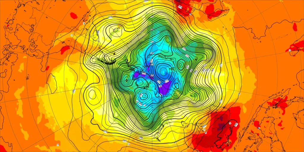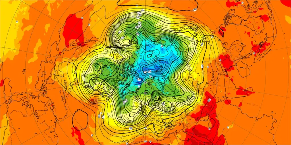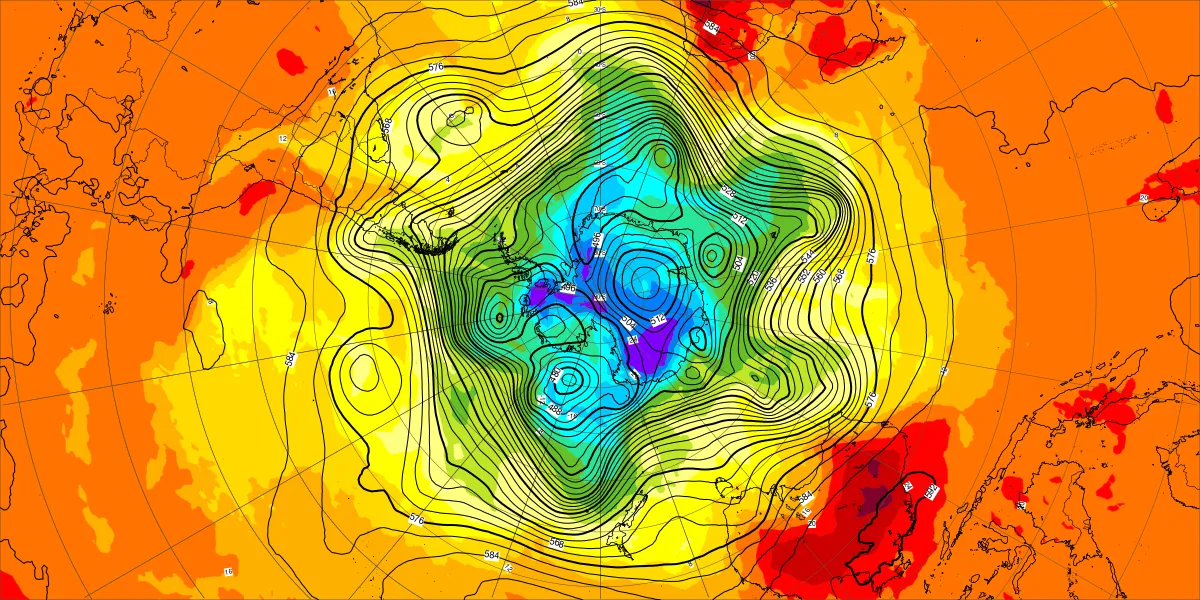 ・カナダ95Wの寒冷渦:寒気南下、850hPa・-4℃線が45N以南まで