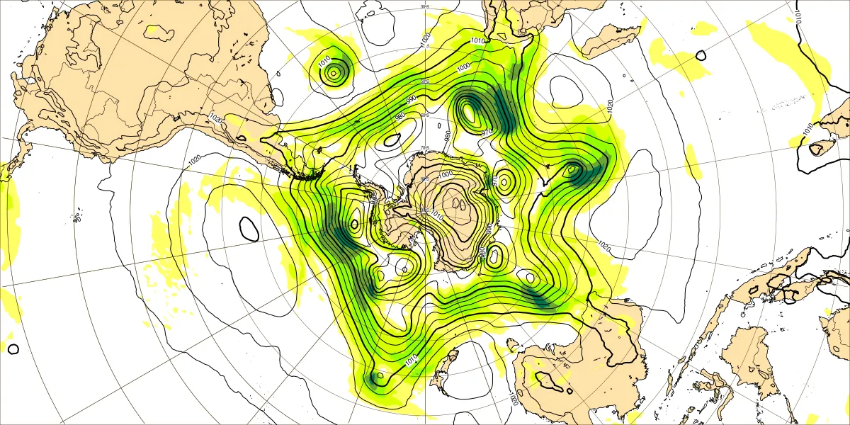 ・ニュージーランドのEの寒気トラフ:寒気北上、850hPa・-4℃線が45S以北まで