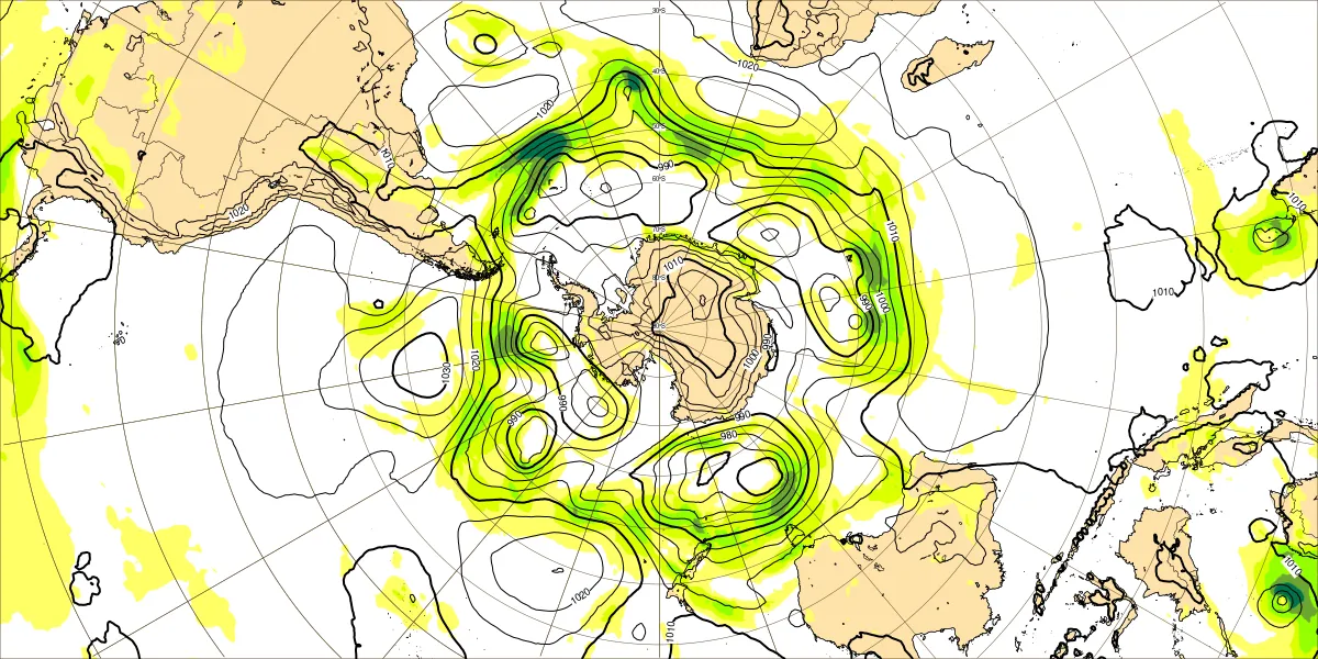 ・太平洋130Wの寒気トラフ:寒気北上、850hPa・0℃線が40S以北まで