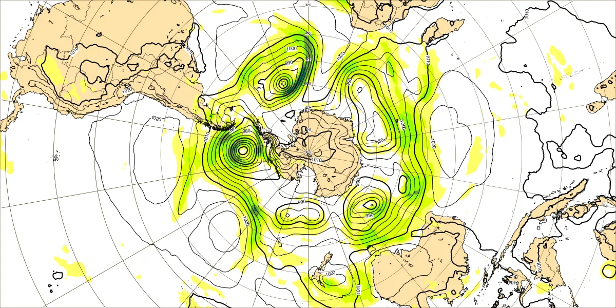 ・太平洋120Wの寒気トラフ:寒気北上、850hPa・0℃線が40S以北まで