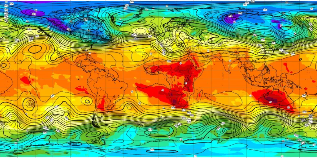 全球大気の流れ、寒気・暖気の状況:2025年12月5日12UTC