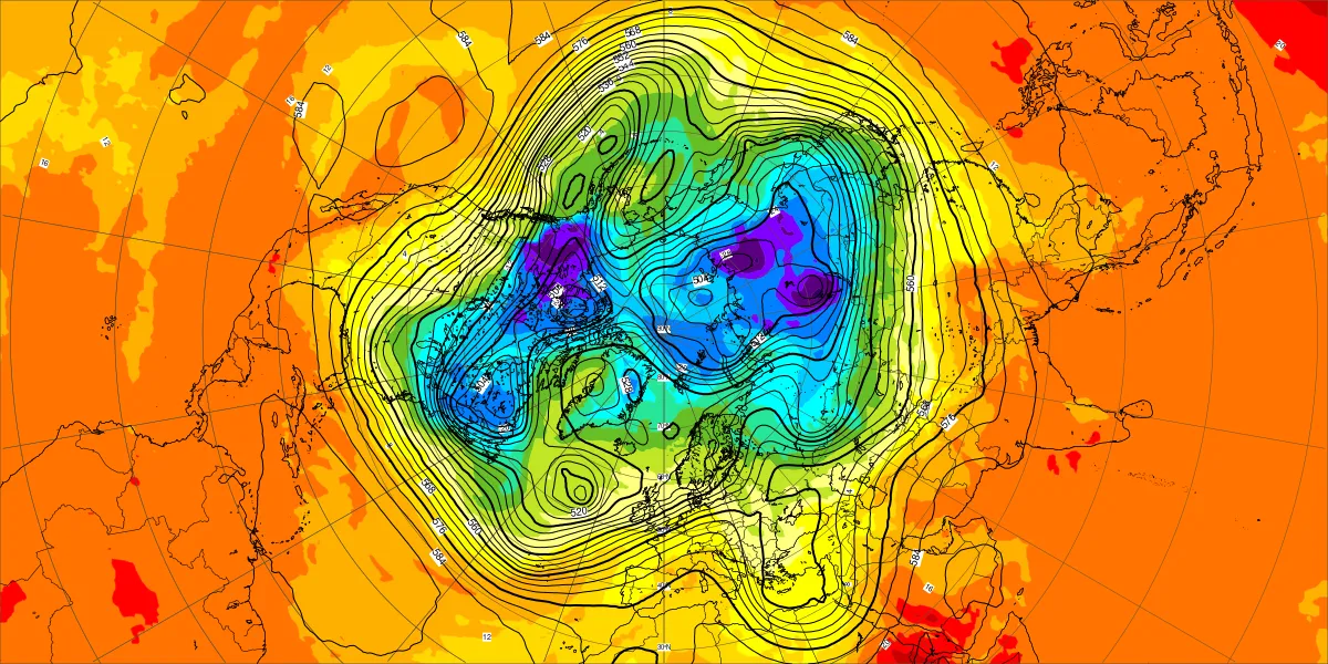 ・シベリア110Eの寒冷渦:寒気南下、850hPa・-28℃線が55Nまで