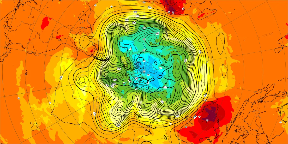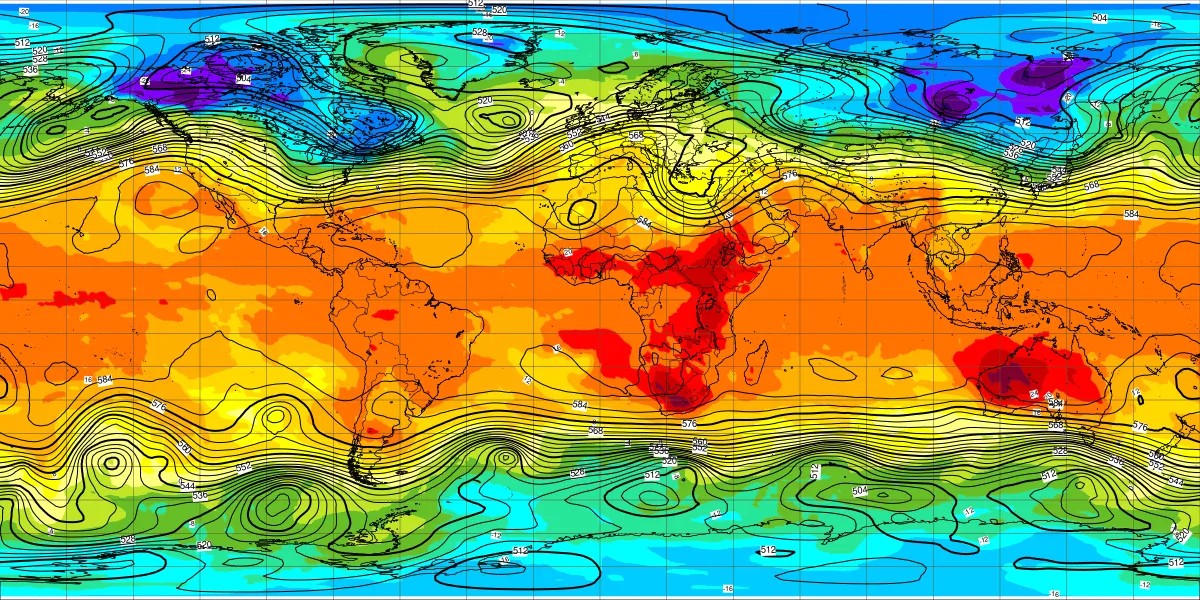 全球大気の流れ、寒気・暖気の状況:2025年12月8日12UTC