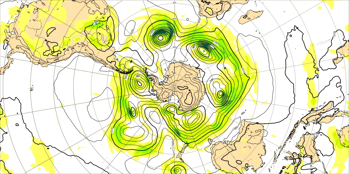 【南半球の500hPa流れ、850hPa気温】