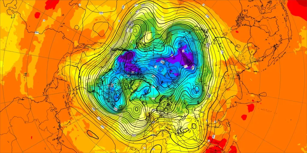 【北半球の500hPa流れ、850hPa気温】