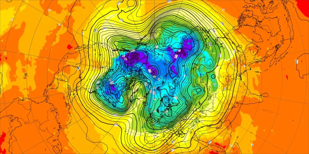 【北半球の500hPa流れ、850hPa気温】