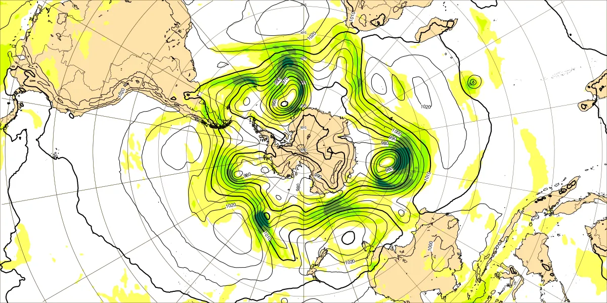 南半球海面気圧1月17日12UTC