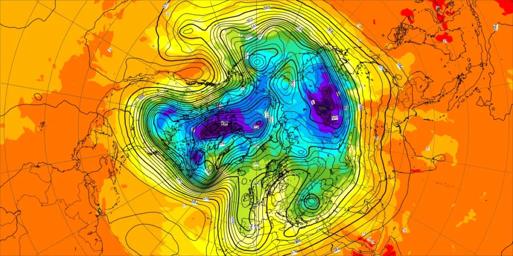 【北半球の500hPa流れ、850hPa気温】