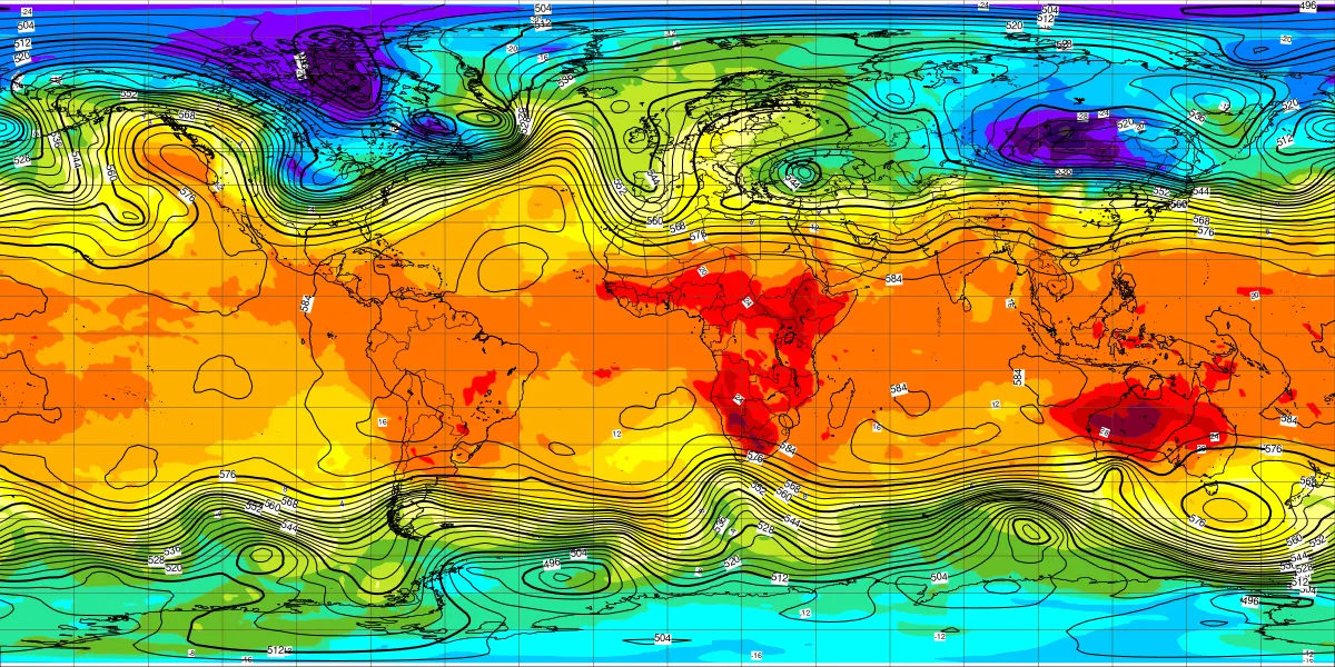 全球500hPa高度1月17日12UTC