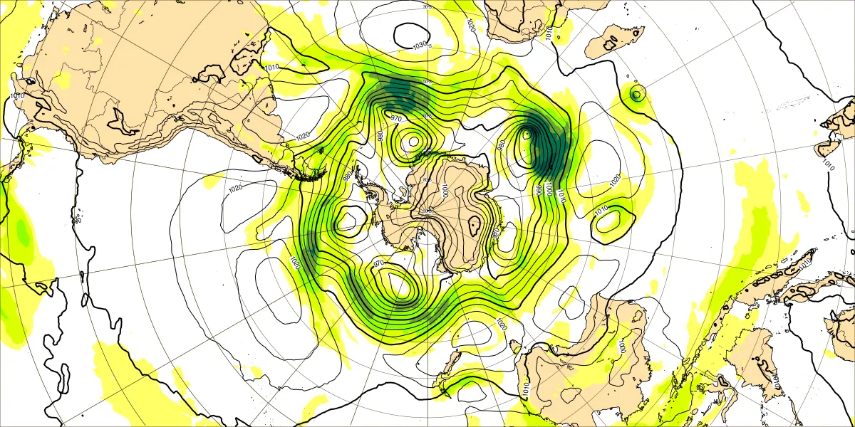 ・太平洋100Wの寒冷渦:寒気東進、850hPa・0℃線は40Sの少しN