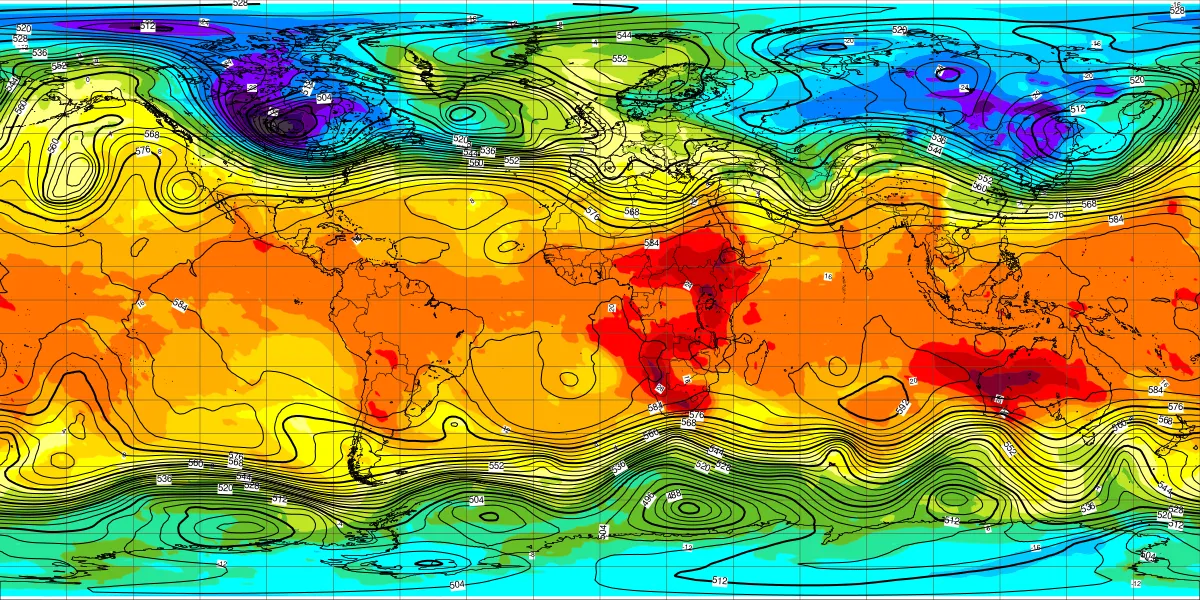 全球500hPa高度1月22日12UTC