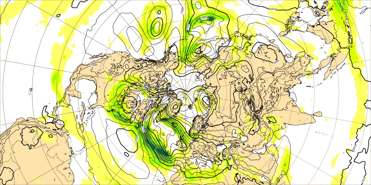 北半球海面気圧1月22日12UTC