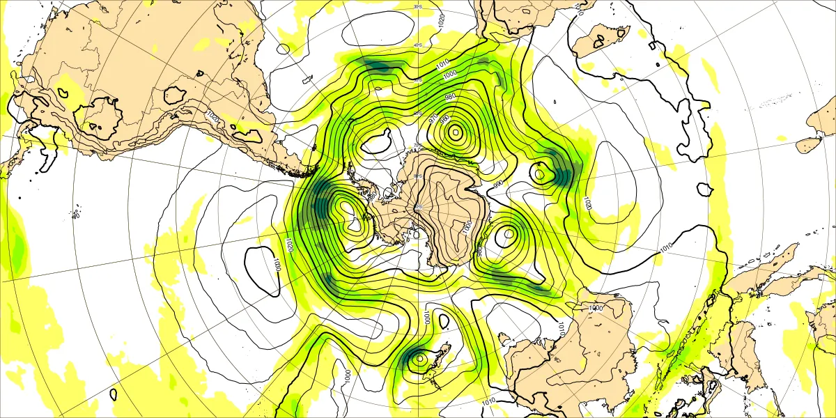 南半球海面気圧1月22日12UTC