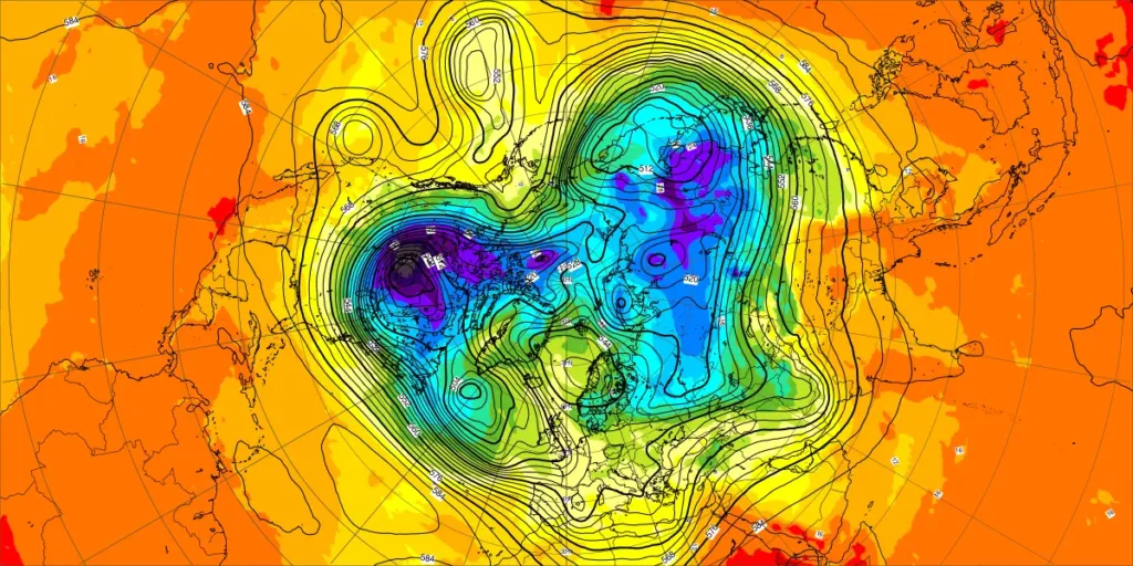 【北半球の500hPa流れ、850hPa気温】