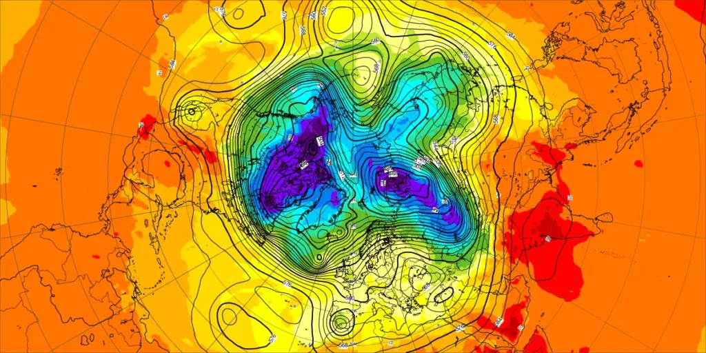 【北半球の500hPa流れ、850hPa気温】