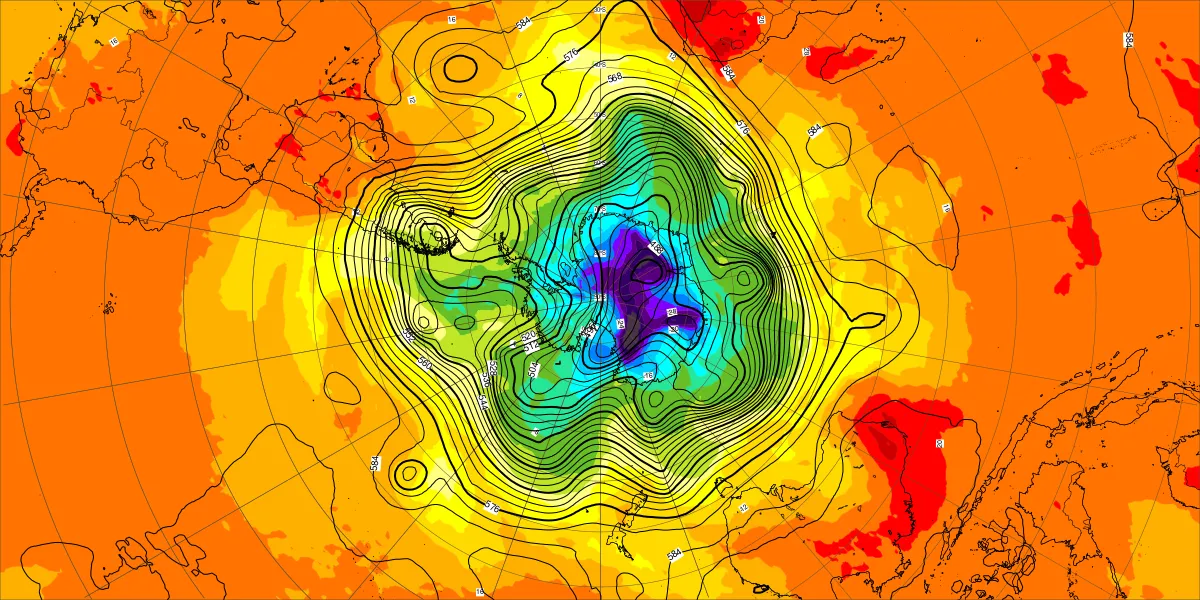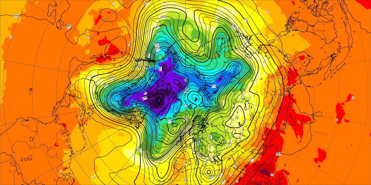 ・シベリア115Eの寒冷渦:寒気南下、850hPa・-12℃線が45Nまで