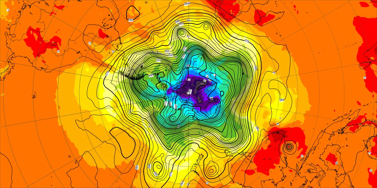 ・ラブラドル海の寒冷渦:寒気東進、850hPa・-8℃線は40N