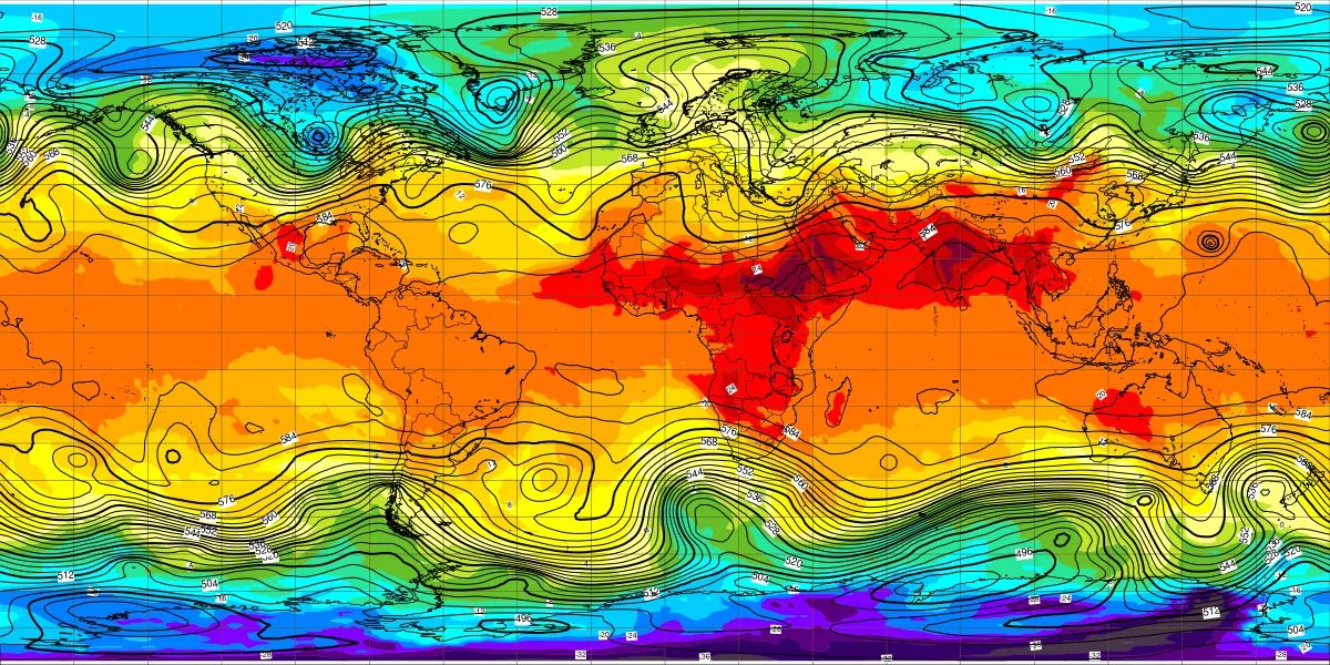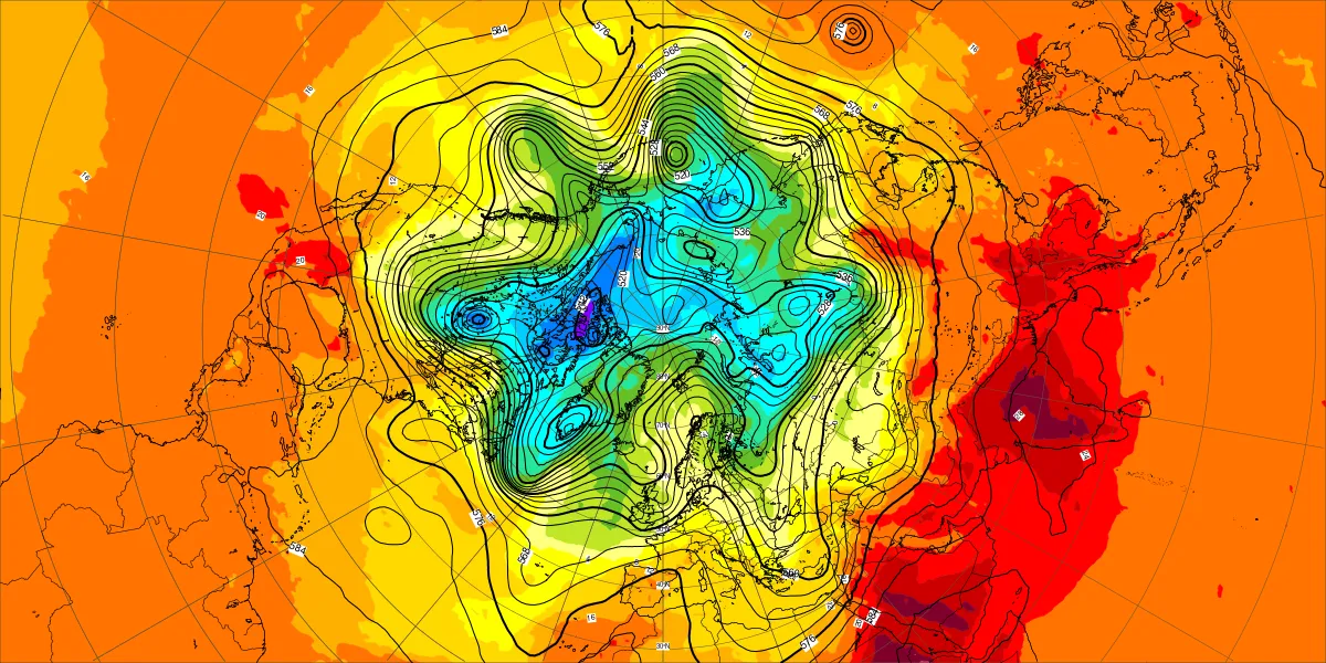 ・ヨーロッパのリッジ:暖気北上、850hPa・8℃線が50Nまで