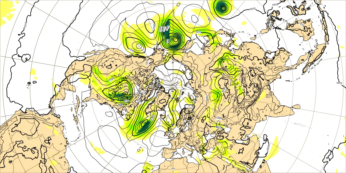 ・偏西風の蛇行は、やや大~大、特にバレンツ海のリッジの流れで蛇行大