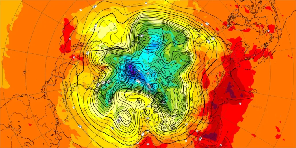 【北半球の500hPa流れ、850hPa気温】