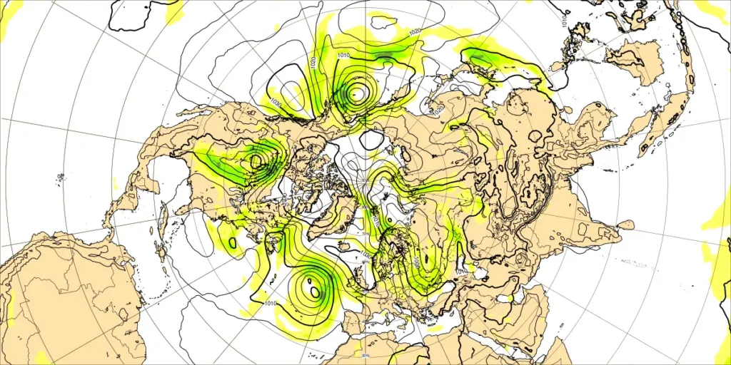 ・イタリアの寒気トラフ:寒気南下
