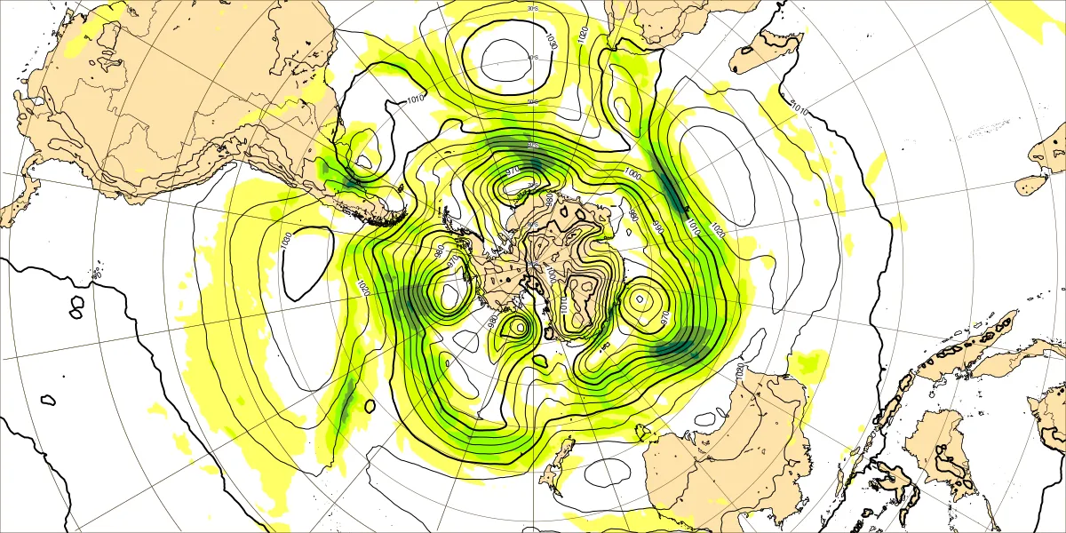 【南半球の500hPa流れ、850hPa気温】