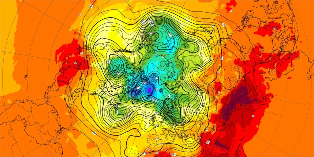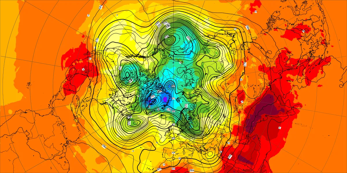 【北半球の500hPa流れ、850hPa気温】