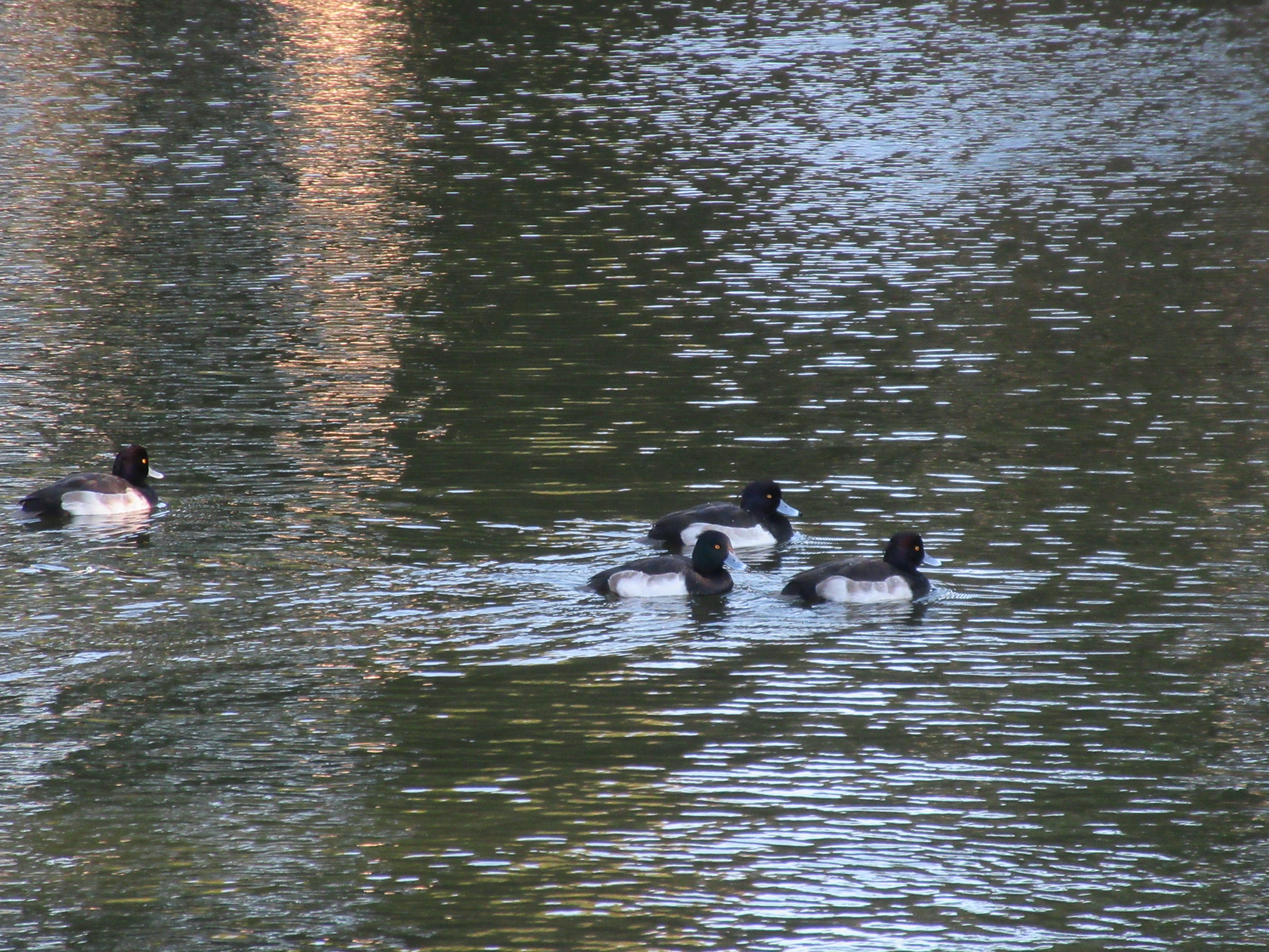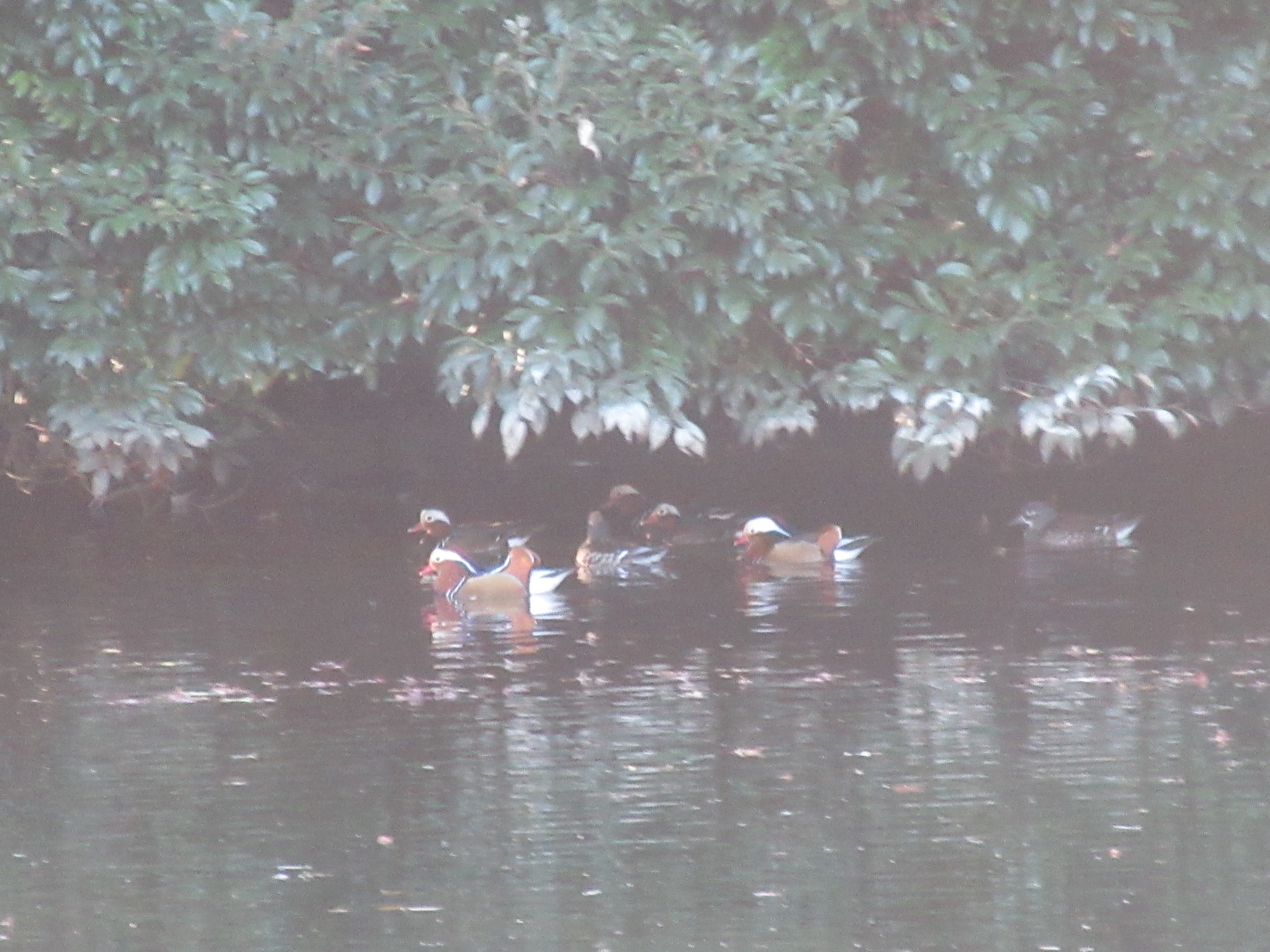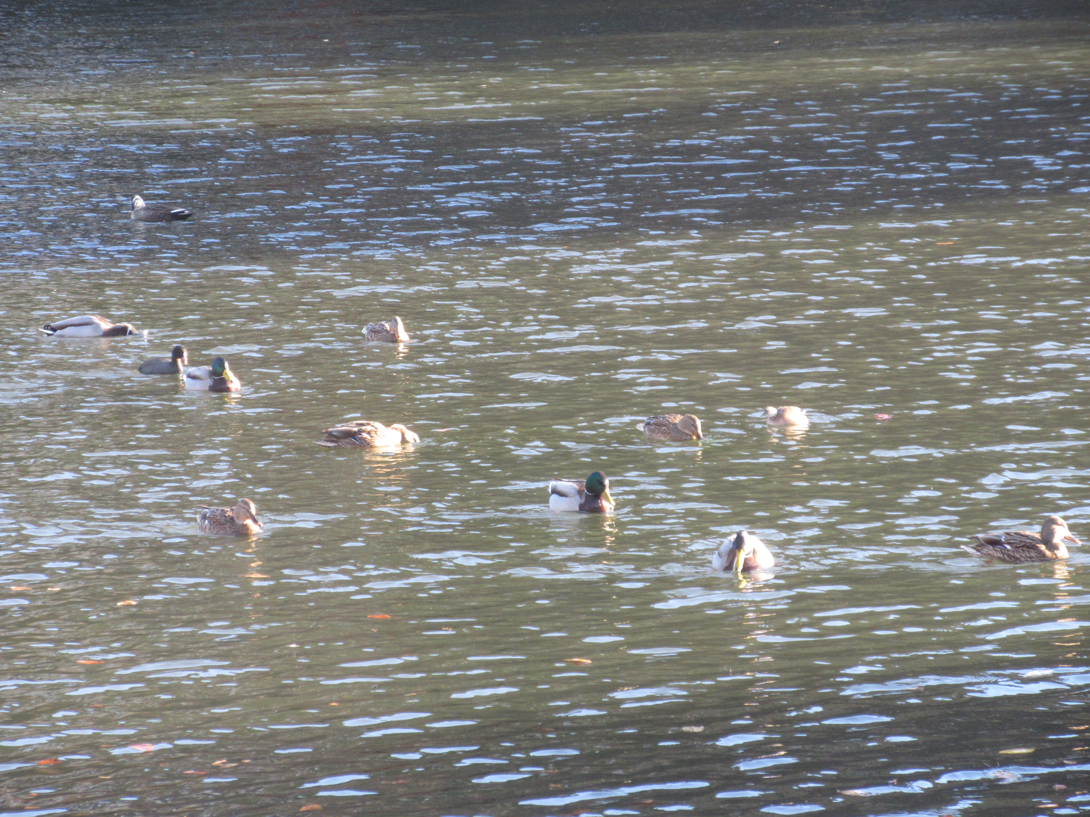 中の池で、マガモ、カイツブリ、オオバン、カルガモ