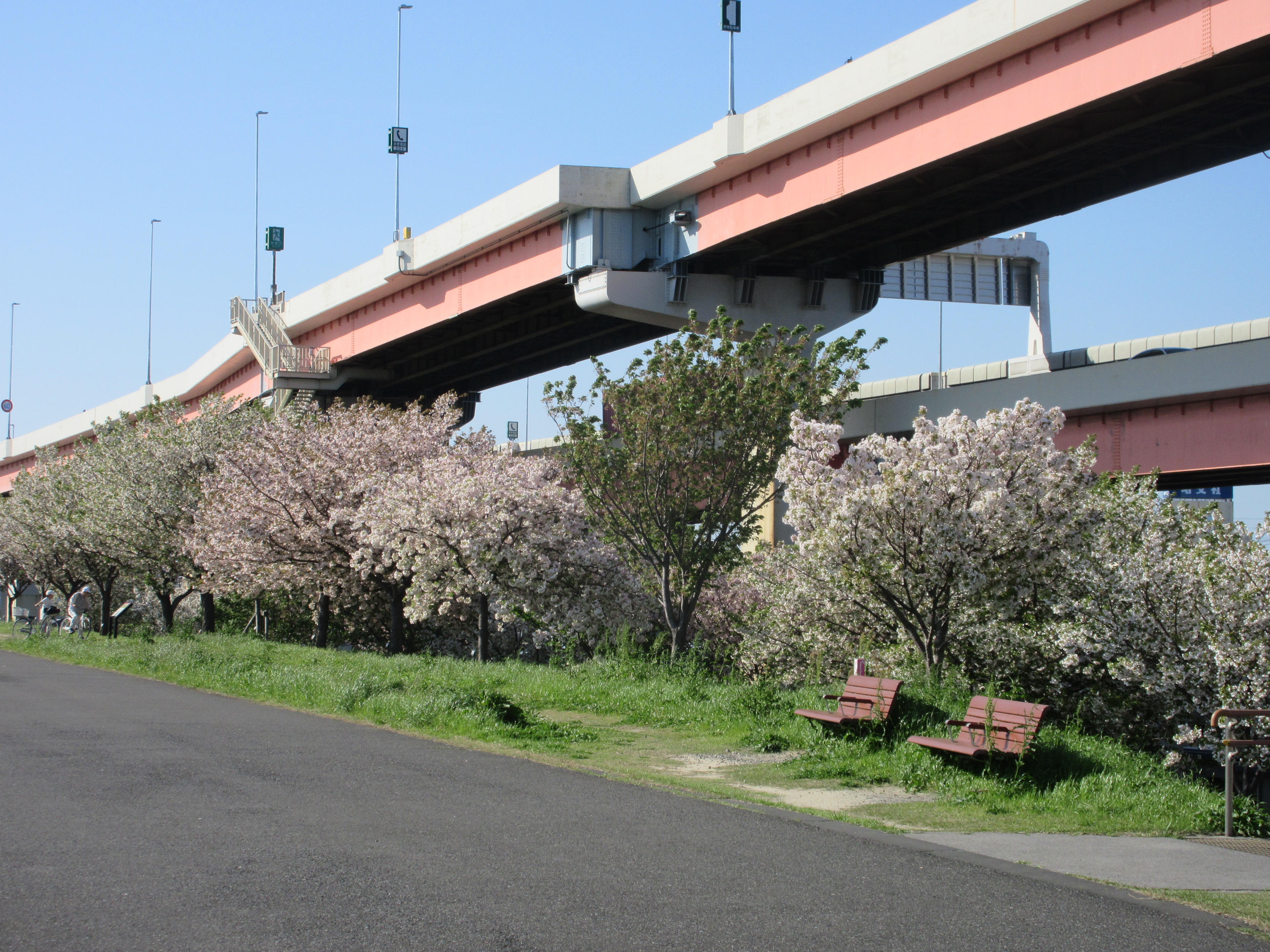 2026年4月13日 / 最終更新日 : 2026年4月13日 kionweb ブログ 気温日記 2026年4月12日 荒川、五色桜橋とスカイツリー 五色桜と首都高 五色桜橋と五色桜 今日、一番きれいだと思った「松月(しょうげつ)」 2026年4月12日:東京都文京区、北区、足立区 晴れ、朝までと夜遅くに曇り。気温は通常の日変化で、最低、最高気温とも平年より大きく高い。午後に荒川(江北橋~鹿浜橋)へ。 東京の気温 最高23.6℃ 14:30 平年差+4.7℃ 5月中旬並み 最低14.2℃ 05:22 平年差+5.1℃ 5月中旬並み