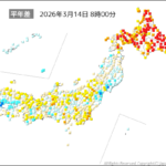 2019年5月13日 / 最終更新日 : 2019年5月13日 kionweb 大気の流れ 全球大気の流れ、寒気・暖気の状況:2019年5月11日12UTC ★注目される現象(500hPa流れ、850hPa気温) ・ロシア~バレンツ海のリッジ:暖気北上 ・中国NE部~オホーツク海N部のリッジ:昇温 ・南米大陸60~70Wの寒気トラフ:チリN部、アルゼンチンN部に寒気 […]