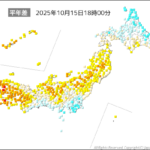 ※ 平年差を、「平年より低い」、「平年より低め」、「平年並み」、「平年より高め」、「平年より高い」の5階級(当サイト独自定義)に分けて記載しています。