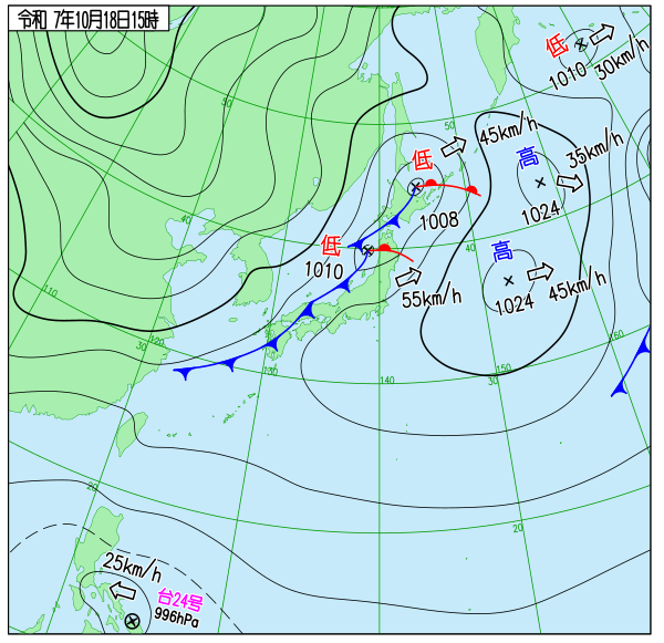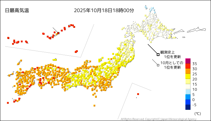 2025/10/18 | 18時までの最高気温平年差(小数点以下切り捨て) | |