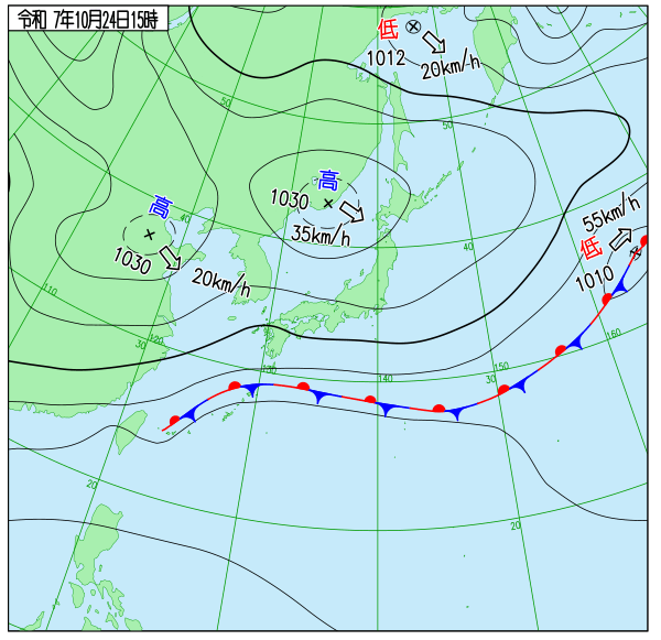 850hPa気温、平年差2025年10月24日 09時(日本時間)