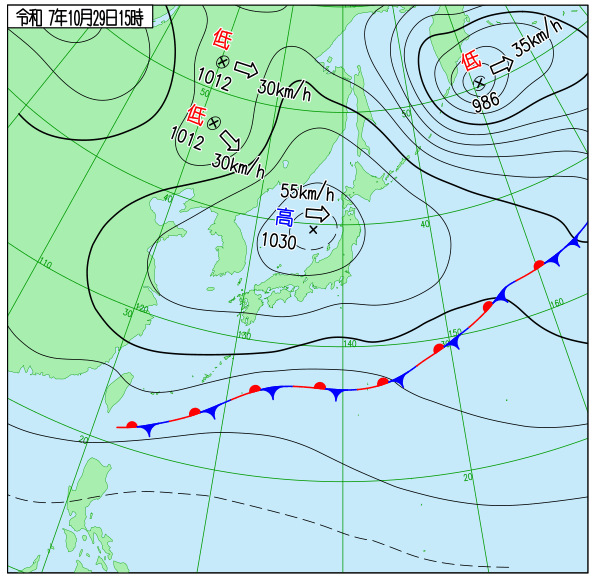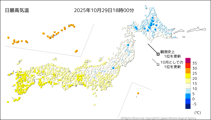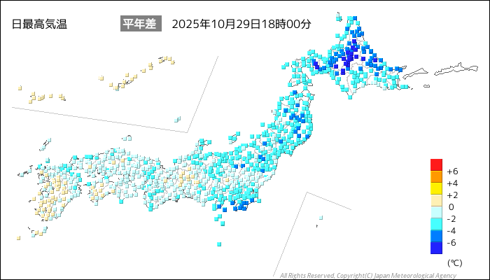 | 2025/10/29 | 18時までの最高気温平年差(小数点以下切り捨て) | |
