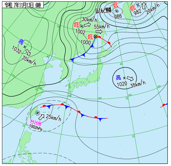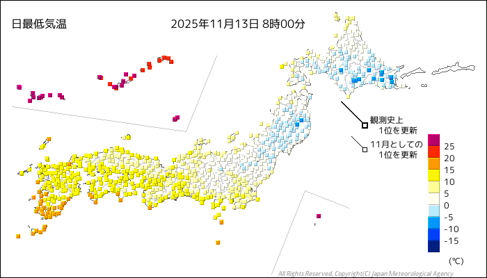 | 2025/11/13 | 8時までの最低気温平年差(小数点以下切り捨て) | |