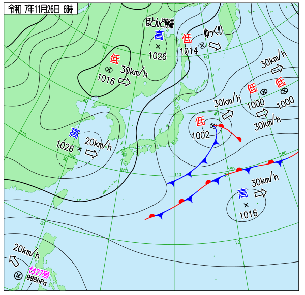 | 2025/11/26 | 8時までの最低気温平年差(小数点以下切り捨て) | |