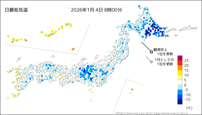 ※ 1月4日(日本時間24時まで)の国内気温記録更新:なし