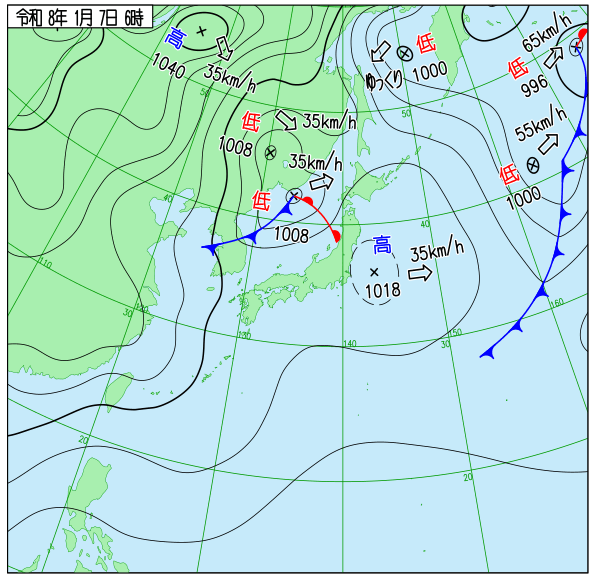 | 2026/1/7 | 8時までの最低気温平年差(小数点以下切り捨て) | |