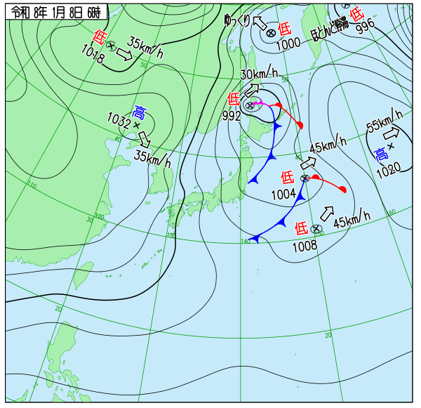 | 2026/1/8 | 8時までの最低気温平年差(小数点以下切り捨て) | |
