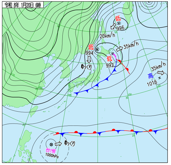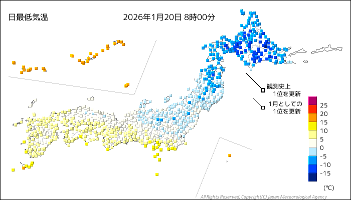 | 2026/1/20 | 8時までの最低気温平年差(小数点以下切り捨て) | |