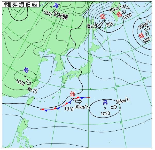 | 2026/2/1 | 8時までの最低気温平年差(小数点以下切り捨て) | |