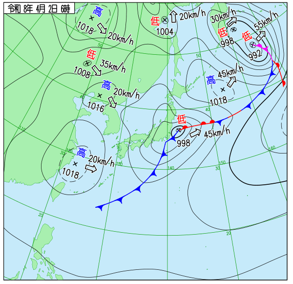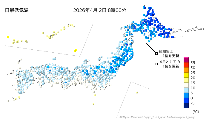 | 2026/4/2 | 8時までの最低気温平年差(小数点以下切り捨て) | |