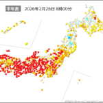2021年12月31日 / 最終更新日 : 2021年12月31日 kionweb 平年差国内一覧表 国内平年差地点別一覧表:2021年12月31日8時(日本時間) 08 時までの最低気温・平年差( 2021年12月31日) ※ 気象庁HP掲載の表の並べ替え等により作成 地点 最低気温(℃) 起時(日本時間) 平年差(℃) 北海道/宗谷 豊富(トヨトミ) -9.4 07:25 -0. […]