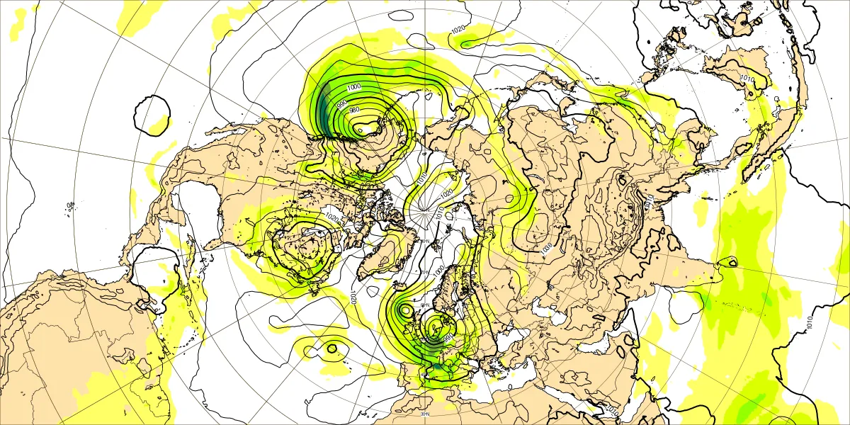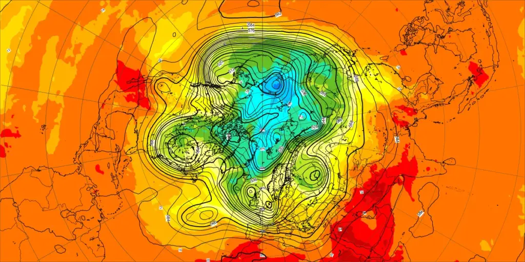 【北半球の500hPa流れ、850hPa気温】